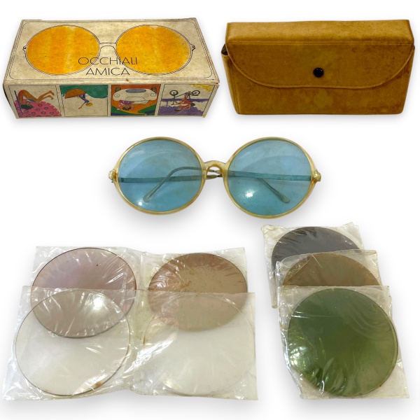 • AMICA - ÓCULOS DE SOL COM LENTES INTERCAMBIÁVEIS, MADE IN ITALY, DÉCADA 1960, MODELO TWIGGY, ESTILO FASHION. EM SUA CAIXA ORIGINAL. VENDIDO NO ESTADO. TRATA-SE DE PEÇA SEMINOVA, PODENDO APRESENTAR SINAIS DE USO, MARCAS DO TEMPO, DESGASTES NATURAIS, PEQUENAS IMPERFEIÇÕES, RESTAUROS, REPAROS E/OU OUTRAS CARACTERÍSTICAS PRÓPRIAS DE SUA NATUREZA, USO E ESTADO DE CONSERVAÇÃO, NÃO SENDO TAIS ASPECTOS, POR SI SÓ, MOTIVO PARA DESCLASSIFICAÇÃO, CANCELAMENTO OU QUESTIONAMENTOS POSTERIORES, DEVENDO O ARREMATANTE CONSIDERAR TAIS CONDIÇÕES PREVIAMENTE À OFERTA E ARREMATAÇÃO.