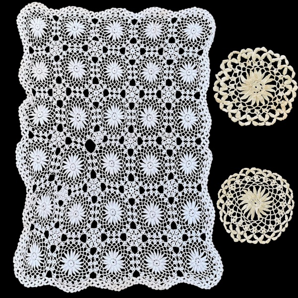 • CONJUNTO, PARTE DE SERVIÇO DE MESA, CONFECCIONADO EM CROCHÊ, PRODUZIDO ARTESANALMENTE, COR BRANCA, COMPOSTO POR TRÊS PEÇAS, SENDO: TOALHA DE MESA, MEDINDO 180 X 150 CM; DESCANSO DE PANELAS E/OU TRAVESSAS, MEDINDO 22 CM E DESCANSO DE PANELAS E/OU TRAVESSAS, MEDINDO 18 CM. TRATA-SE DE PEÇA SEMINOVA, PODENDO APRESENTAR SINAIS DE USO, MARCAS DO TEMPO, DESGASTES NATURAIS, PEQUENAS IMPERFEIÇÕES, RESTAUROS, REPAROS E/OU OUTRAS CARACTERÍSTICAS PRÓPRIAS DE SUA NATUREZA, USO E ESTADO DE CONSERVAÇÃO, NÃO SENDO TAIS ASPECTOS, POR SI SÓ, MOTIVO PARA DESCLASSIFICAÇÃO, CANCELAMENTO OU QUESTIONAMENTOS POSTERIORES, DEVENDO O ARREMATANTE CONSIDERAR TAIS CONDIÇÕES PREVIAMENTE À OFERTA E ARREMATAÇÃO.