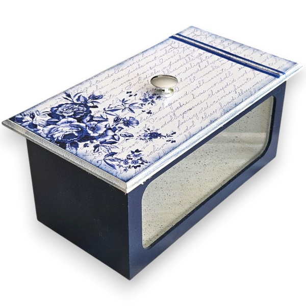 • BELÍSSIMA CAIXA PORTA OBJETOS EXECUTADA EM MDF COM TRABALHO DE DECOUPAGE, MEDINDO 14 X 26 X 16 CM.