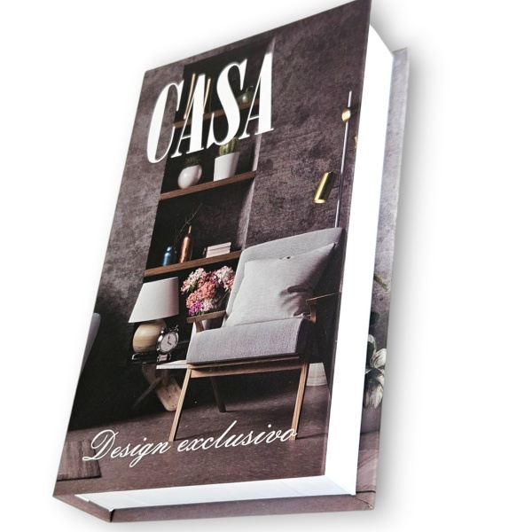 • CAIXA PORTA JÓIAS, MODELO "FAKE BOOK", EXECUTADA EM PAPEL CARTONADO, MEDINDO 4 X 23 X 13 CM.