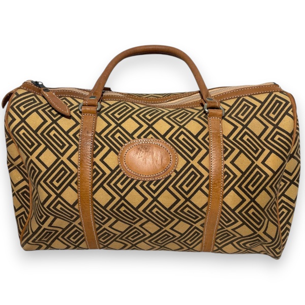 • BOLSA DE VIAGEM CONFECCIONADA EM TECIDO LONADO ESTAMPADO COM PADRONAGEM GEOMÉTRICA, CORES BEGE E MARROM, COM DETALHES, ALÇAS E ACABAMENTOS EM COURO NA COR CARAMELO, FECHAMENTO SUPERIOR POR ZÍPER, MEDINDO 23 X 40 CM. TRATA-SE DE PEÇA SEMINOVA, PODENDO APRESENTAR SINAIS DE USO, MARCAS DO TEMPO, DESGASTES NATURAIS, PEQUENAS IMPERFEIÇÕES, RESTAUROS, REPAROS E/OU OUTRAS CARACTERÍSTICAS PRÓPRIAS DE SUA NATUREZA, USO E ESTADO DE CONSERVAÇÃO, NÃO SENDO TAIS ASPECTOS, POR SI SÓ, MOTIVO PARA DESCLASSIFICAÇÃO, CANCELAMENTO OU QUESTIONAMENTOS POSTERIORES, DEVENDO O ARREMATANTE CONSIDERAR TAIS CONDIÇÕES PREVIAMENTE À OFERTA E ARREMATAÇÃO.